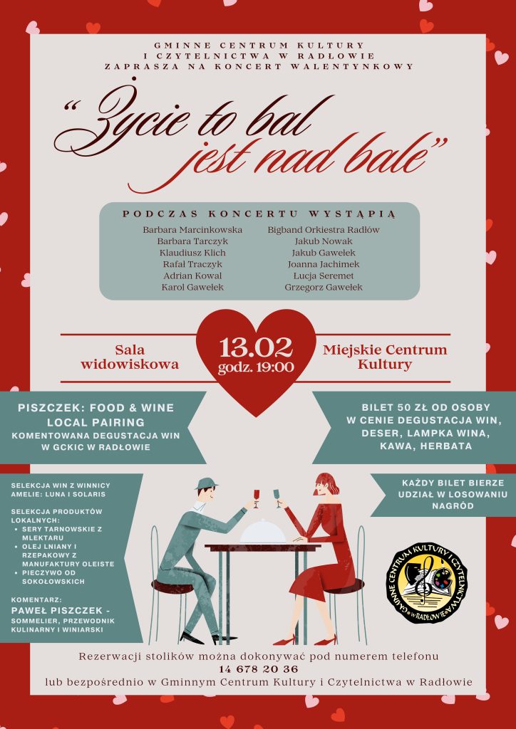 Gminne Centrum Kultury w Radłowie serdecznie zaprasza na Koncert Walentynkowy, który odbędzie się